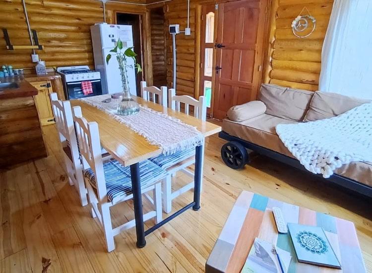 En Cabañas Aguamarina, te invitamos a vivir una experiencia única en un entorno natural que rejuvenece el alma. Disfruta de nuestras cabañas de troncos, completamente equipadas, diseñadas para acoger entre 3 y 5 personas, donde cada rincón está pensado para tu confort. Relájate en la cocina completa, comparte momentos inolvidables en el deck con sillones y aprovecha las comodidades como aire acondicionado, calefacción y Wi-Fi.